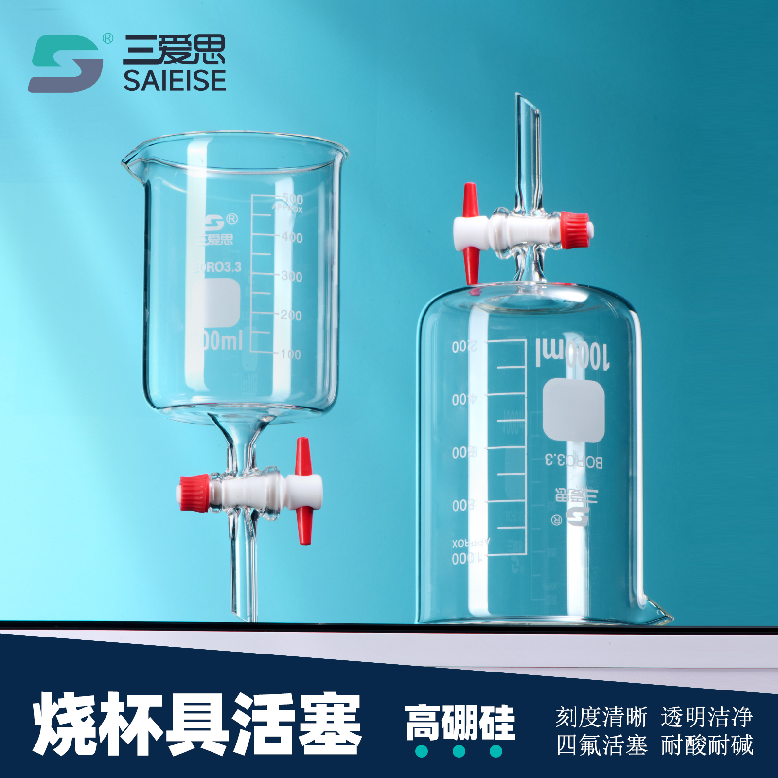 三爱思2000mL高硼硅透明低型玻璃烧杯具四氟活塞真空泵检测密封不渗漏斗化工科学仪器厂家