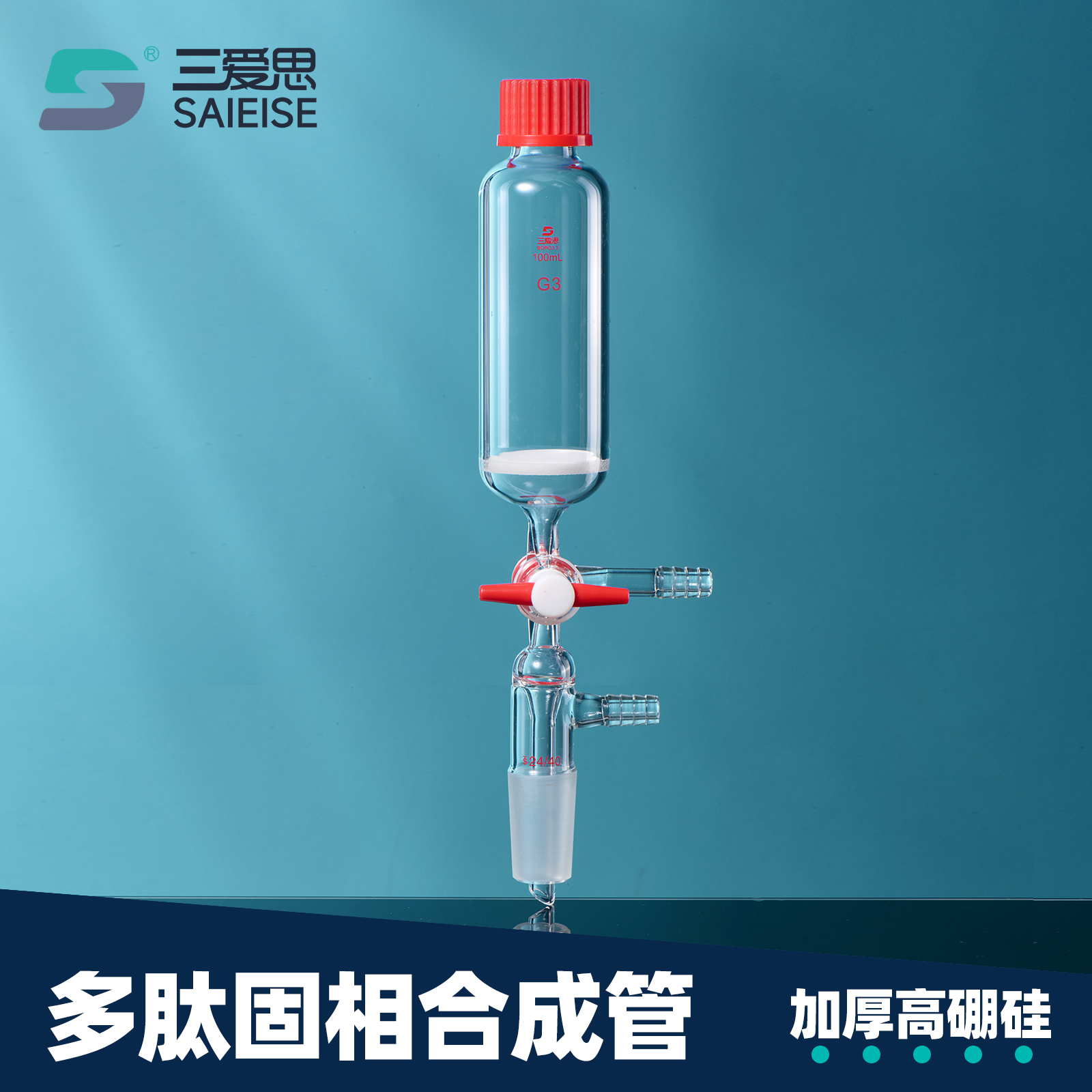 三爱思 多肽固相合成管具砂芯板具三通接头配尼龙螺帽硅胶垫片容量25 50 100 250 500mL实验玻璃仪器活塞接头