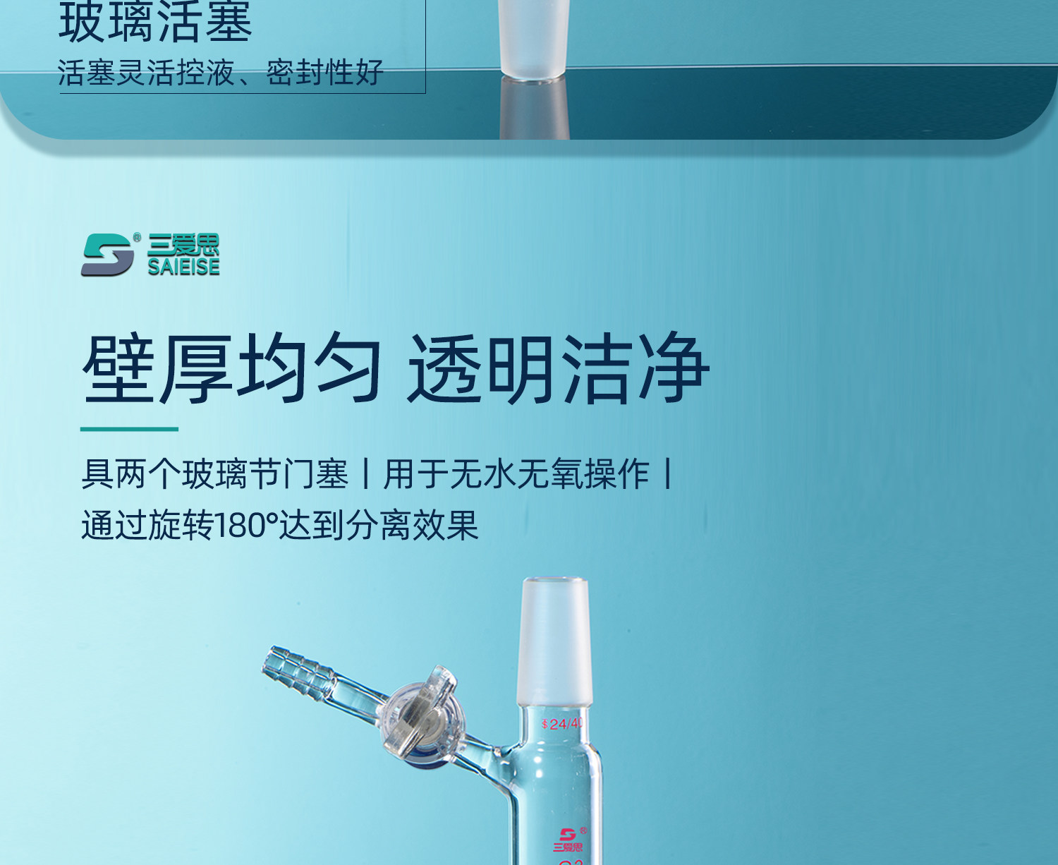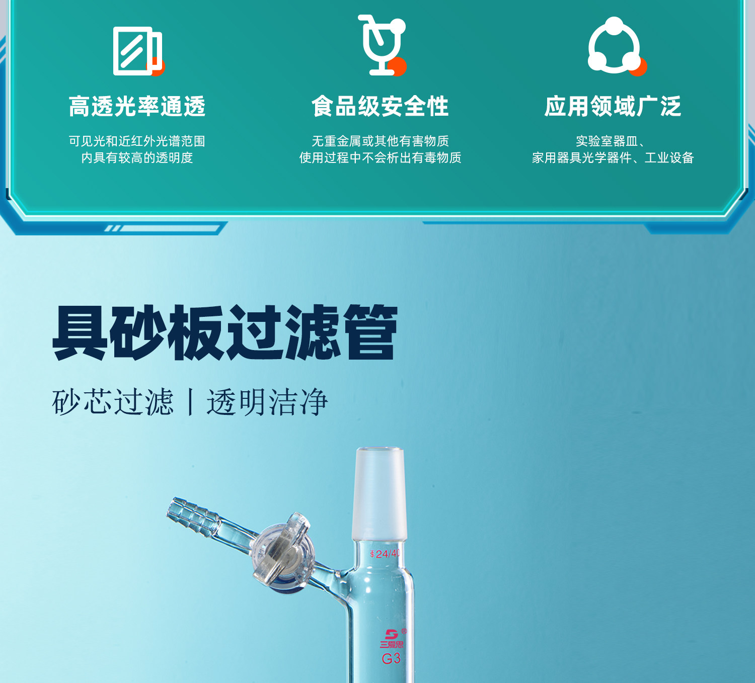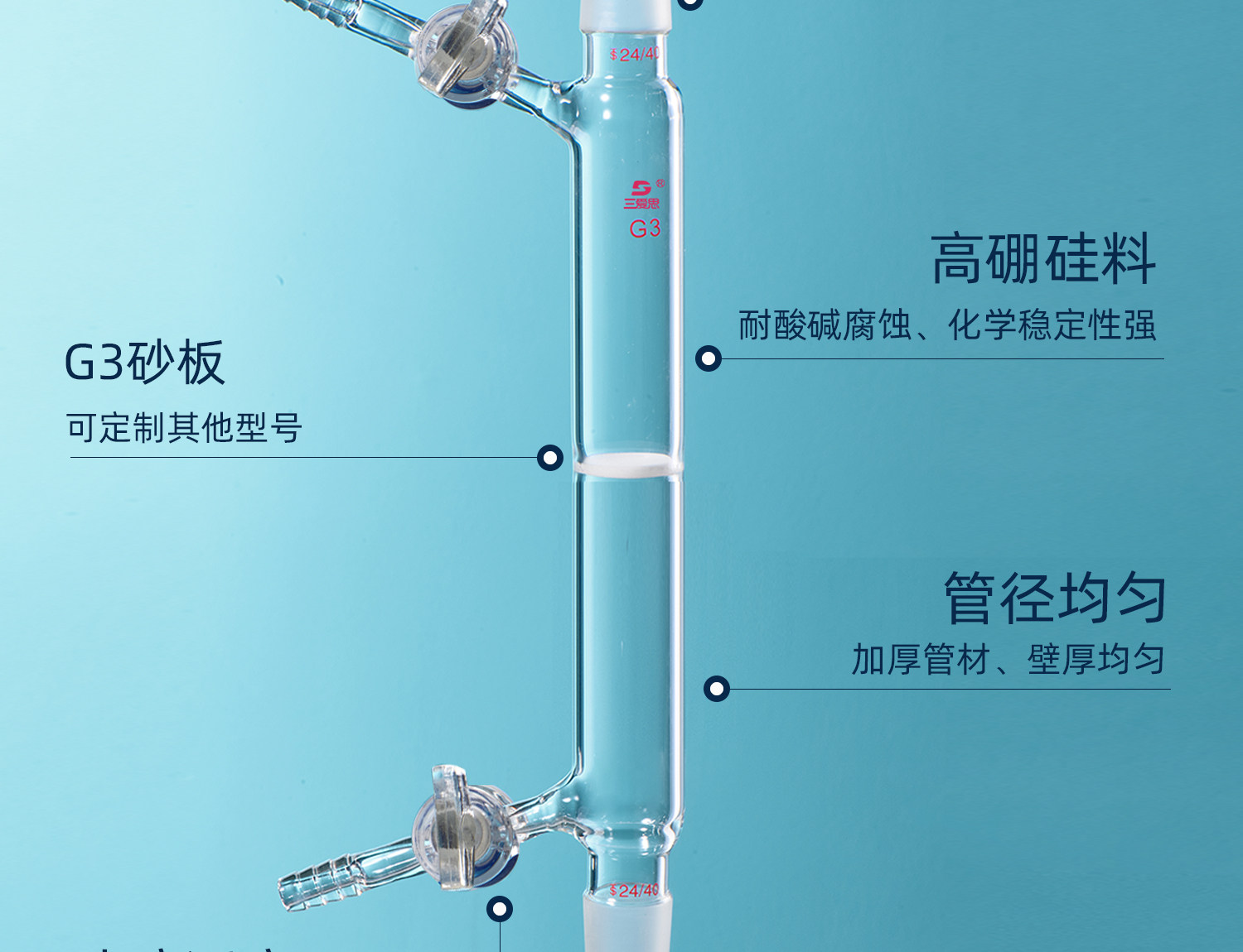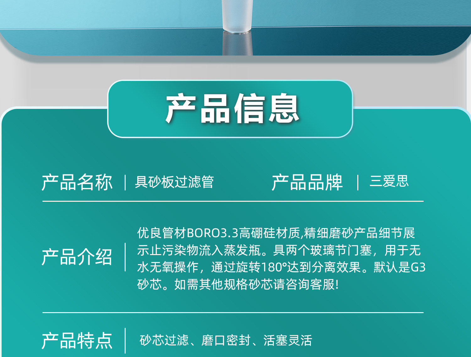 三爱思 具砂板过滤管F47 导气管具玻璃活塞 砂芯过滤磨口密封 高硼硅玻璃 可定制 物理化学实验室器材耗材