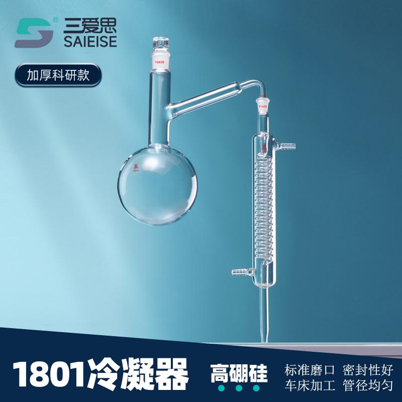 三爱思 1801冷凝器T37 蒸馏水制作 精油提取萃取装置含蒸馏器圆底蒸馏烧瓶蛇型冷凝管 高硼硅玻璃 实验室器材