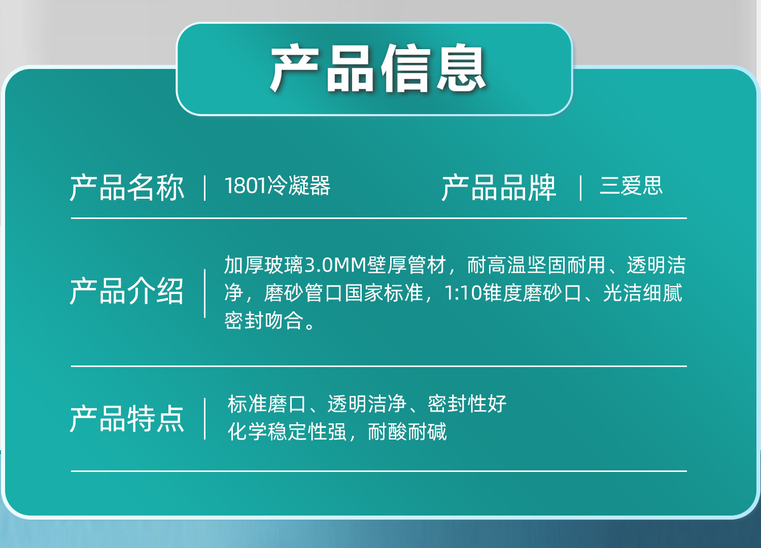 首页 > 玻璃器皿(套装) > 1801套装 > 三爱思 1801冷凝器T37 蒸馏水制作 精油提取萃取装置含蒸馏器圆底蒸馏烧瓶蛇型冷凝管 高硼硅玻璃 实验室器材