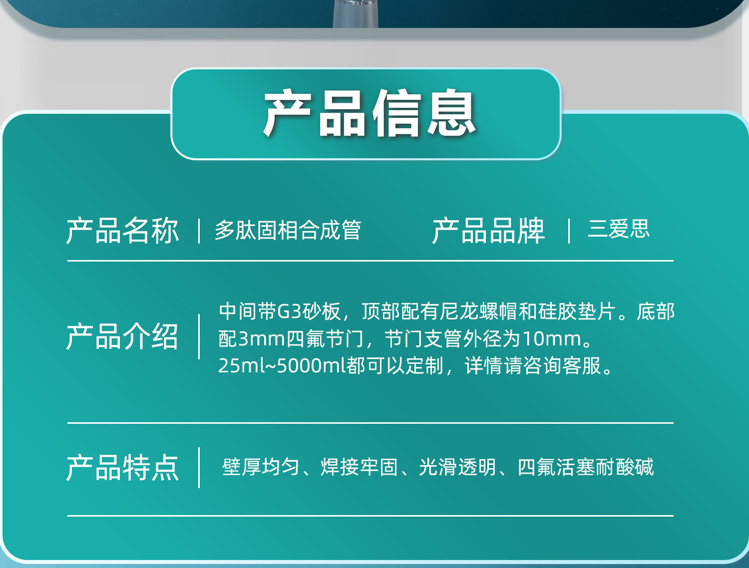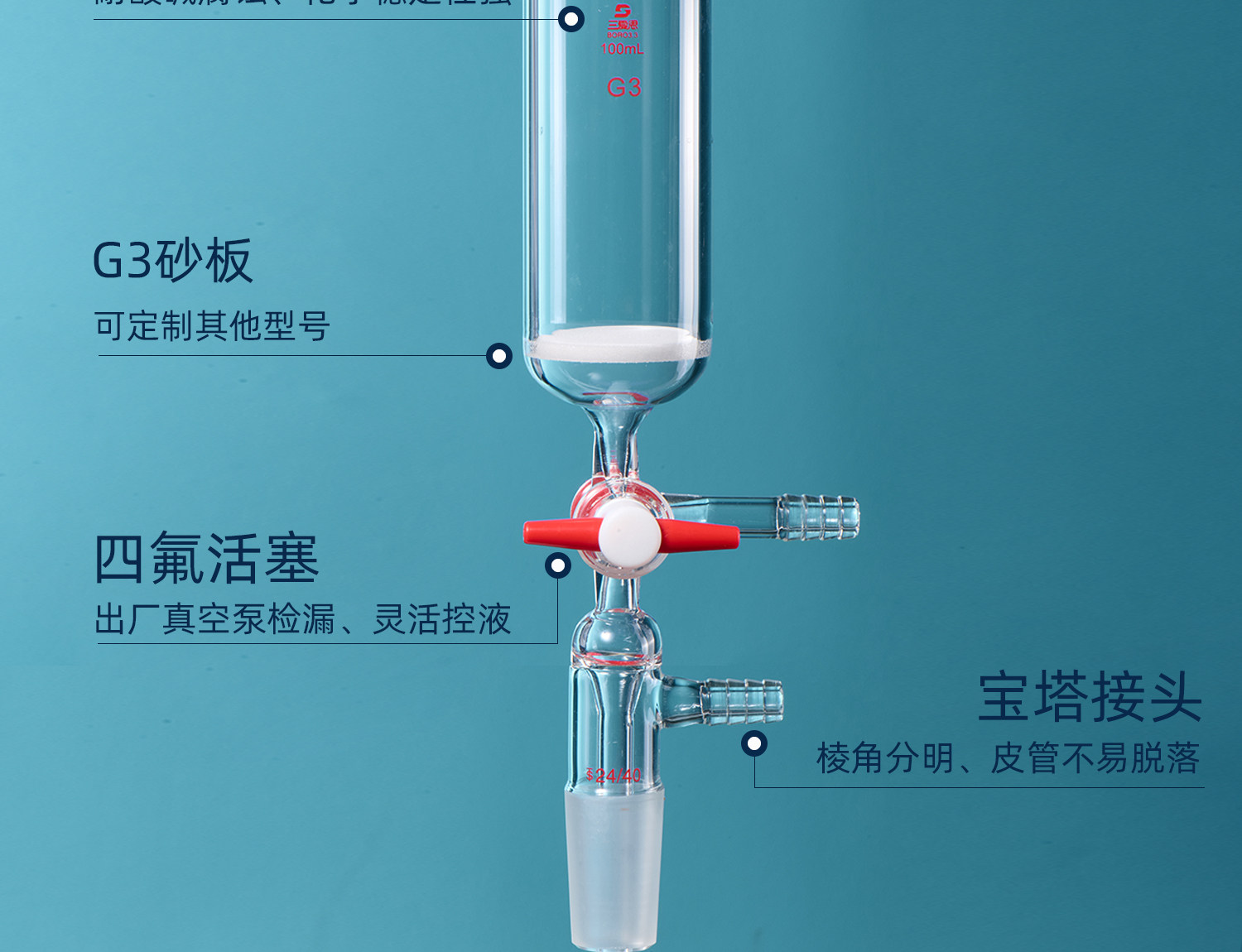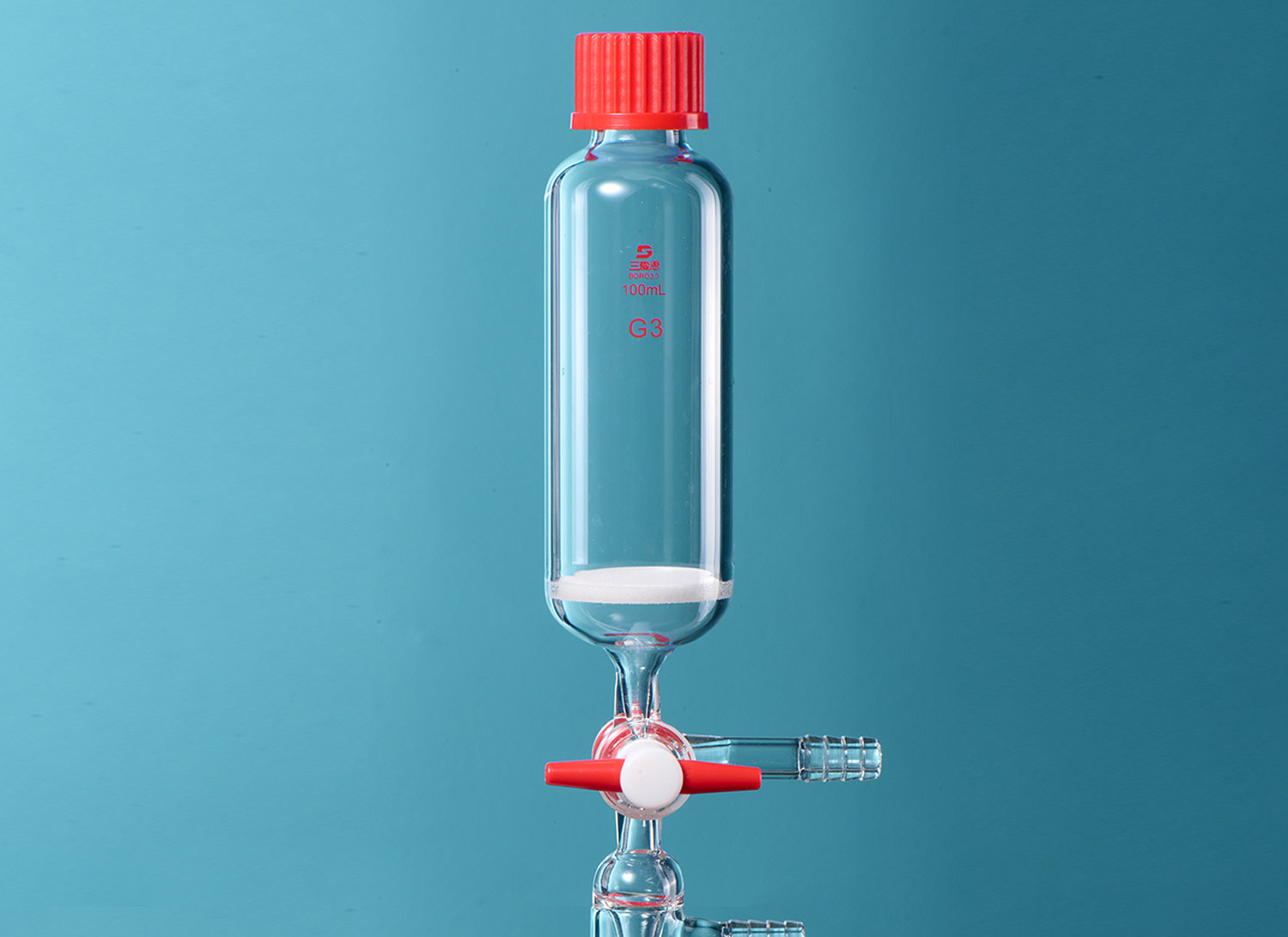 三爱思 多肽固相合成管具砂芯板具三通接头配尼龙螺帽硅胶垫片容量25 50 100 250 500mL实验玻璃仪器活塞接头