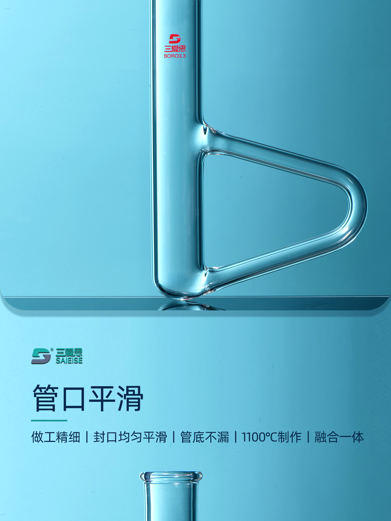 三爱思 玻璃集气瓶气体收集瓶125/250/500/1000ml双面磨砂玻璃瓶毛玻璃片边口磨砂教学仪器可定制