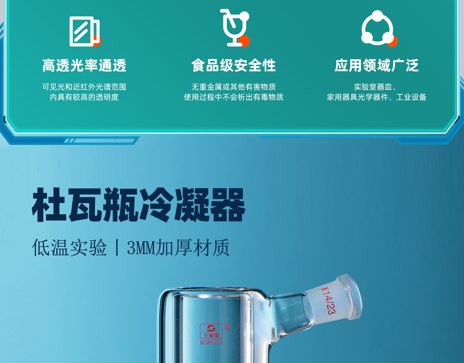 三爱思 玻璃集气瓶气体收集瓶125/250/500/1000ml双面磨砂玻璃瓶毛玻璃片边口磨砂教学仪器可定制