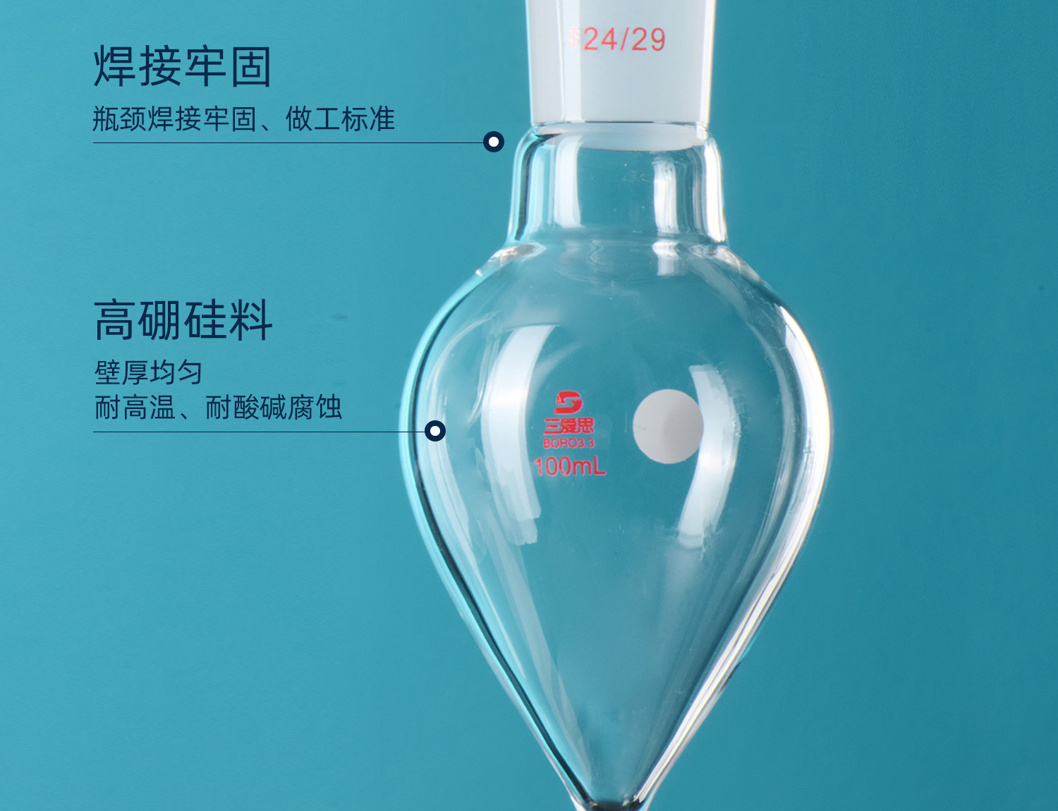 三爱思 储液球A27 加液球溶剂溶液储存瓶缓冲玻璃瓶50-5000ml 配层析柱双钩挂皮筋防脱落 物理化学实验室器材